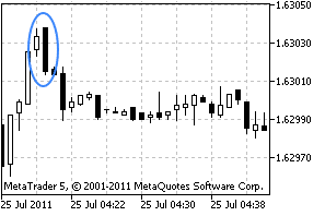 Występuje w trendzie wzrostowym i wskazuje na możliwe odwrócenie trendu. Reprezentowana jest przez świecę wzrostową z korpusem mniejszym od korpusu następnej świecy – spadkowej.