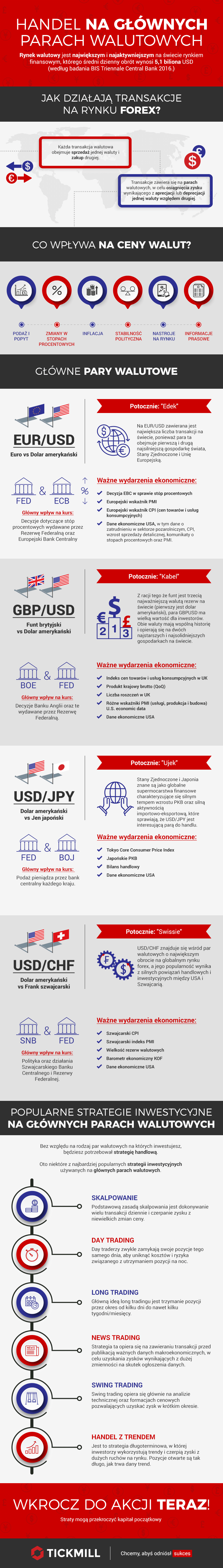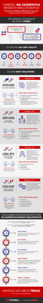 - Główne (majors): EUR/USD, GBP/USD, USD/JPY, USD/CHF.