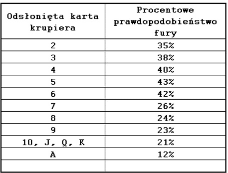 Po drugie: jaka jest szansa, że krupier przekroczy 21 punktów, tj. Będzie miał furę w zależności od wysokości odkrytej karty.