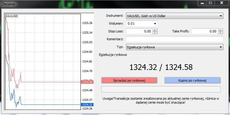 1324.58 (Cena kupna ASK) – 1324.32 (Cena sprzedaży BID)