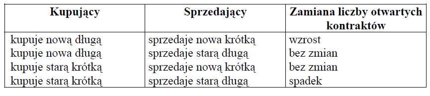 Każdy obrót dokonywany na rynku wpływa na liczbę otwartych pozycji na jeden z trzech sposobów – liczba otwartych pozycji rośnie, maleje lub pozostaje niezmieniona.