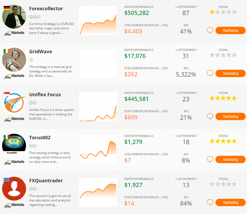 - Dostawcy sygnałów – zwykle są to handlowcy, którzy chętnie dzielą się i są kopiowani przez swoich obserwujących. Wysokość opłat wyrównawczych zależy od powodzenia strategii.